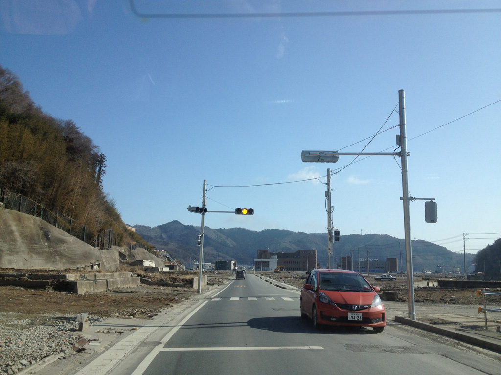 △医療センター駐車場が完成目前!!  △震災後初の信号は、ココから!(震災前に同じく点滅中!!ww)