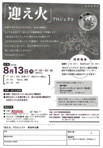 来る 8 月 13 日、かつて住んでいた方々をこの地にお迎えする為、お盆の「迎え火」を行います。今を生きる私たち自身が未来に向き合う為の時間でもあります。
