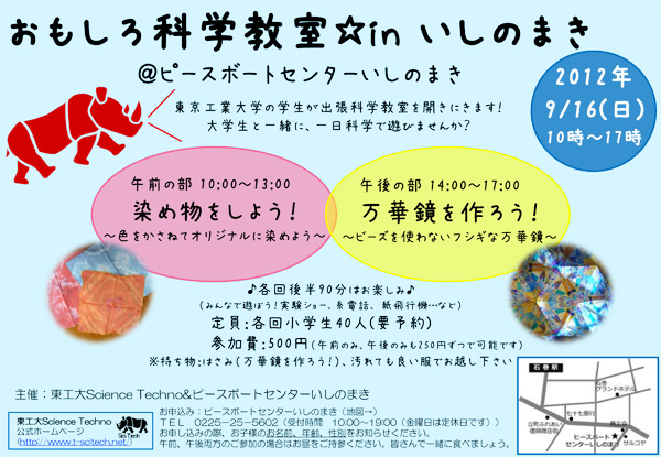 主 催 : 東工大Science Techno(http://www.t-scitech.net/ )、ピースボートセンターいしのまき