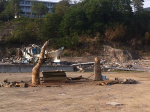 瓦礫撤去が進む中、なんとかこの津波を耐え抜いた